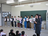 校長先生は「79日間の2学期に学んだ多くのこととともに,たくさんの方々からいただいた優しい心に感謝することを忘れないこと,そして,健康に3学期を迎えるようにしよう」ということをお話しになりました。また,全校児童を代表して3名のお友達から「2学期の反省と冬休みの抱負」についての発表がありました。どの発表にも,自分の成長を喜ぶ気持ちや友達への感謝の心が表れており,充実した2学期であったことが伺えました。
