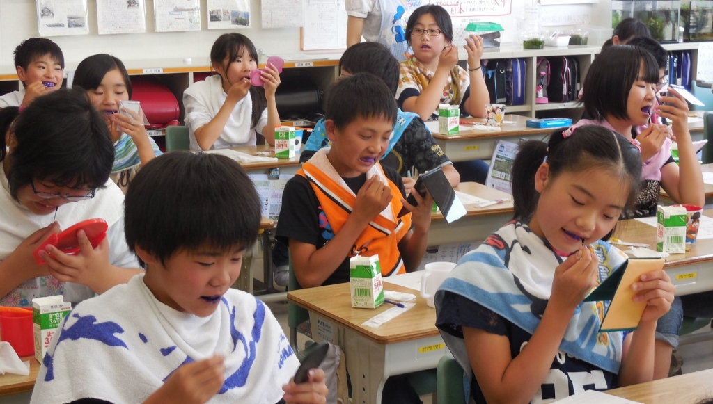 3年生は,学級活動で「おやつについて考えよう」の学習を行いました。望ましいおやつの取り方について考え,実践意欲を高める授業でした。子どもたちは栄養教諭から普段食べているおやつに含まれる糖,油,塩の量を知らされ,真剣な表情でおやつの取り方を考えていました。
