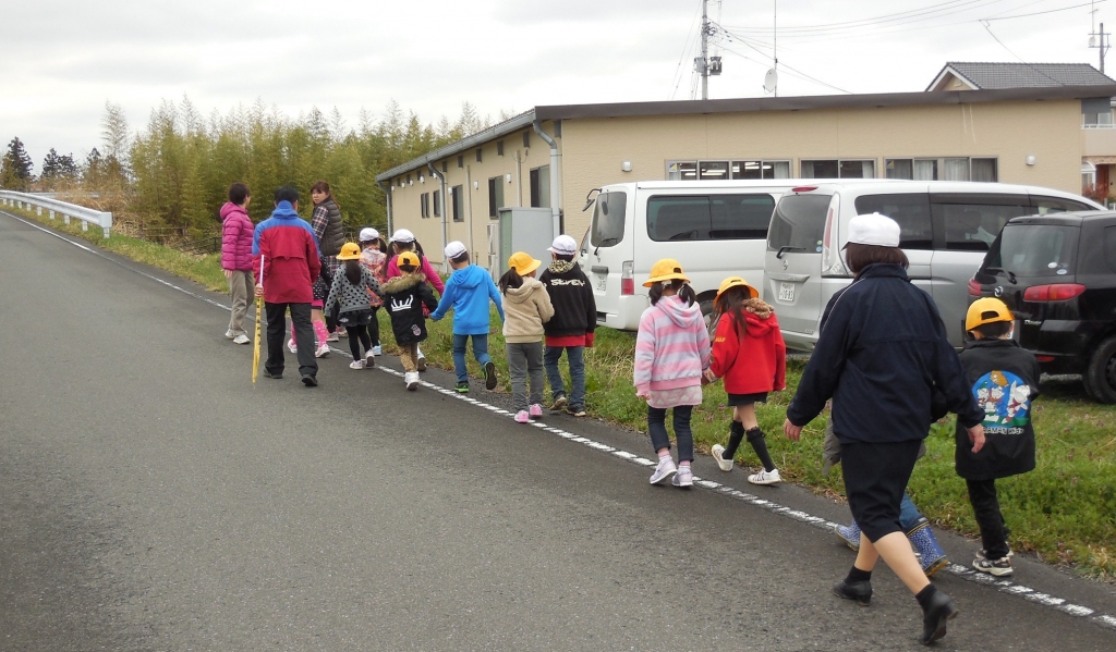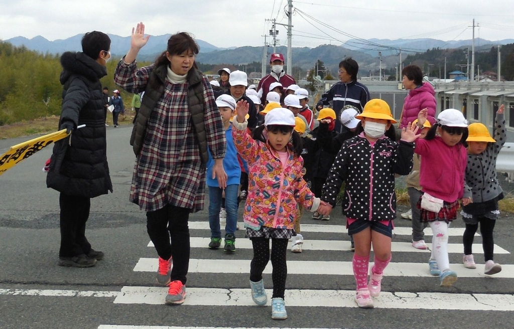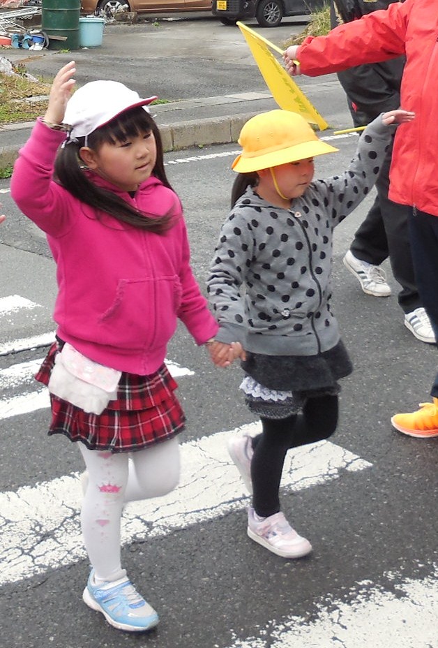 その後、学校を出て、実際に道路を歩きました。1年生は2年生と手をつないで、左右を一緒に確認しながら歩くことができました。道路を横断するときは、前の人が渡ってもついて行かず、車との距離を自分で判断して渡ることを学習しました。