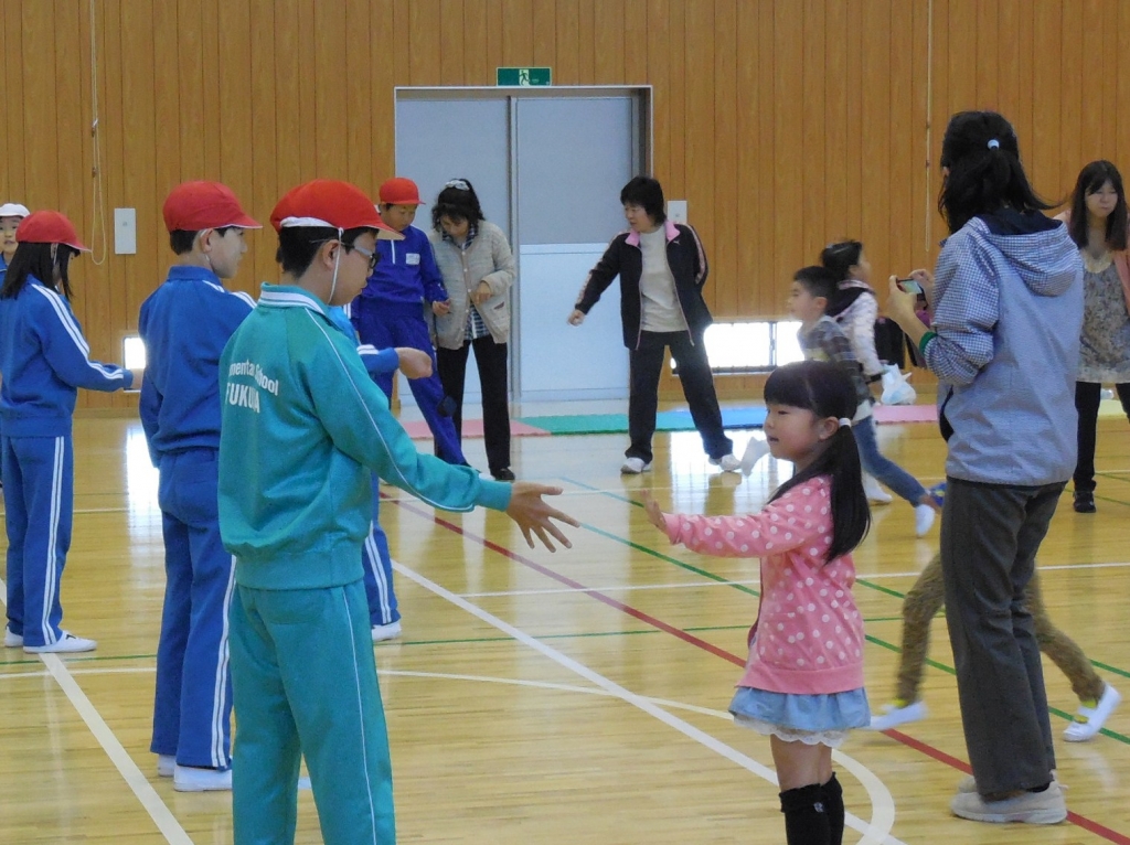 「動物園にいこうよ」は、お題となる動物の名前の文字数を数えて、その人数が集まるゲームでした。文字数が多くなると、集まるのが大変になってきましたが、お互い声を掛け合ったり、違う学年の友達と交流したりすることができました。