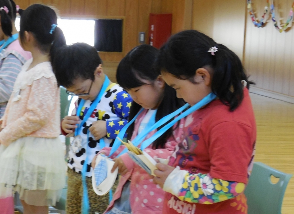 ゲームの後には、2年生からのプレゼントがありました。1年生は、すてきな絵や折り紙の入ったプレゼントを大事そうに受け取り、じっと見つめていました。