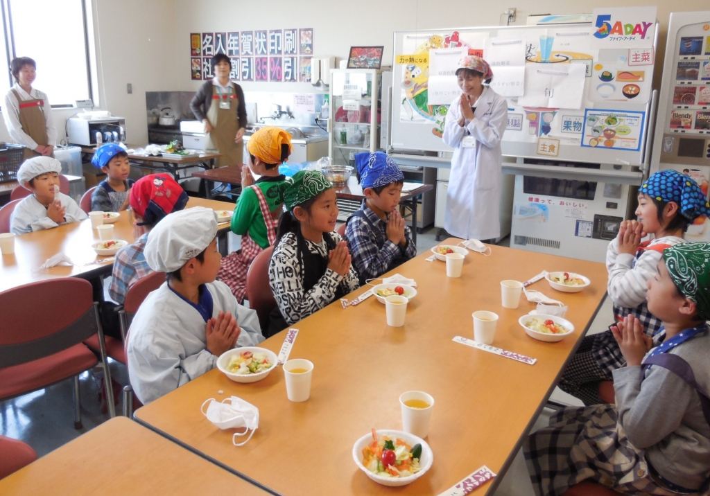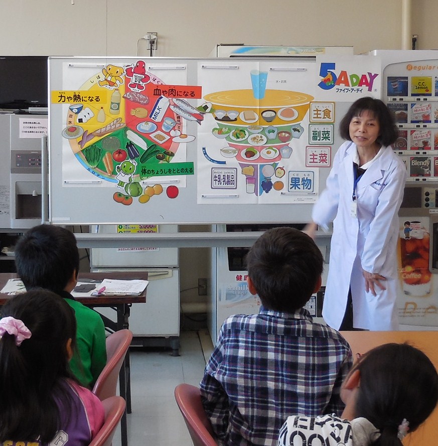 「5 A DAY 食育体験学習プログラム」に参加し、野菜・果物を食べる大切さやその量、バランスの良い食生活について教えていただきました。