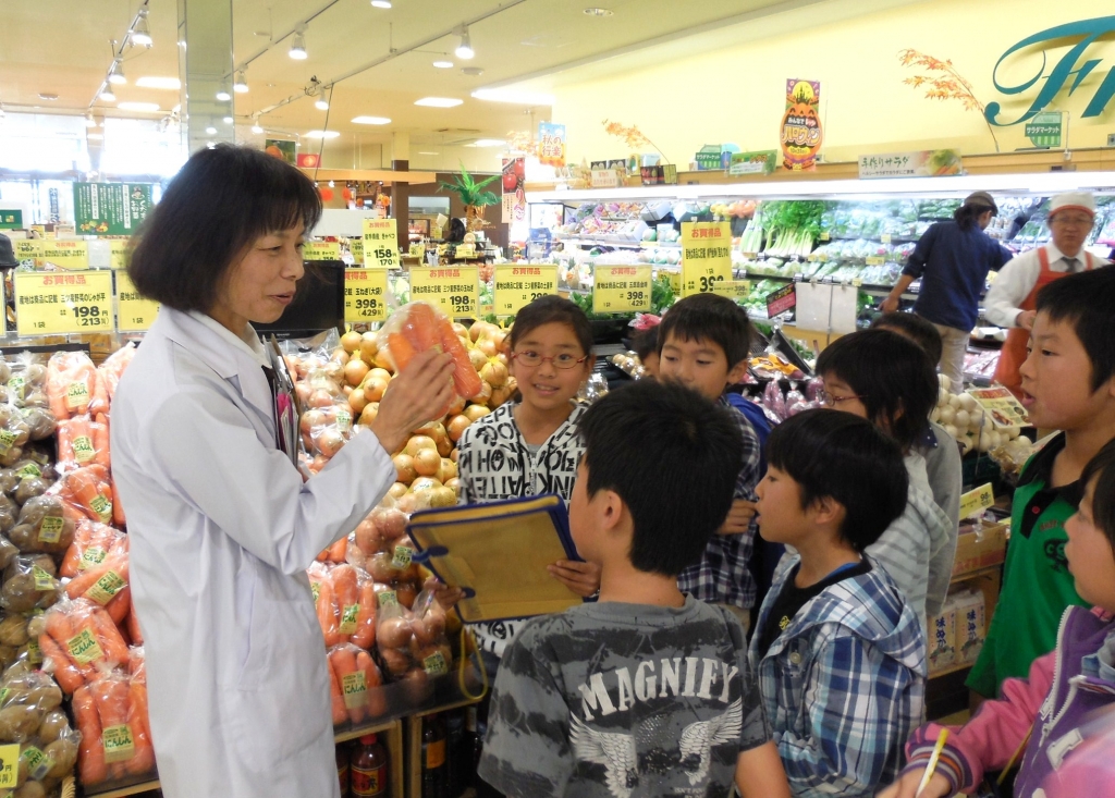 場所は、ヨークベニマル原町西店です。売り場やレジの様子も知ることができ、社会科の学習にも役立ちました。