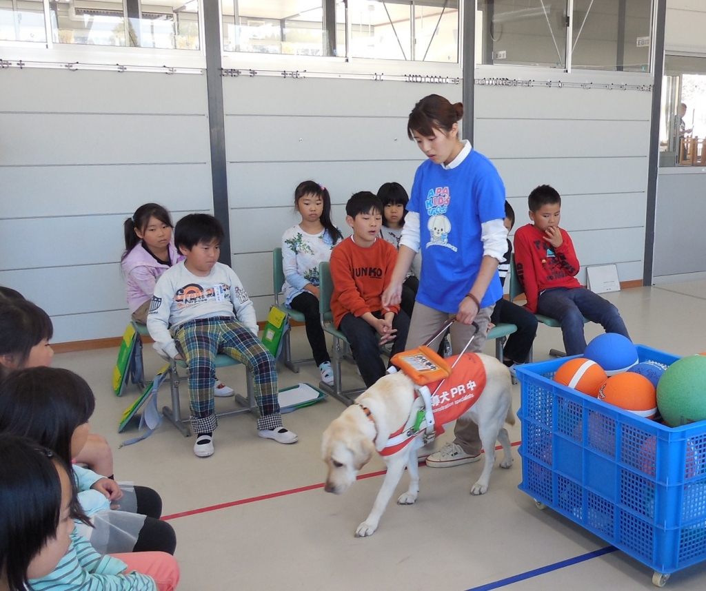 3年生は、国語で「盲導犬の訓練」の学習を行います。その学習の一環として、10月31日(金)、学校に2頭の盲導犬が来てくれました。