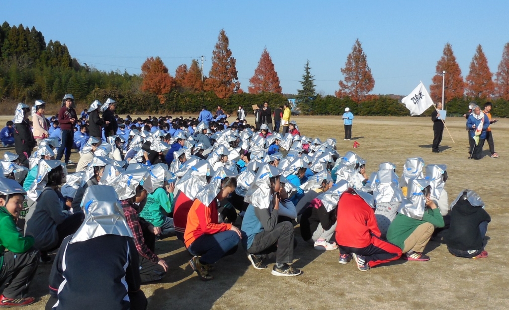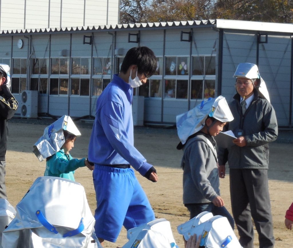 防災ヘルメットをかぶり、速やかに避難する姿には、3年前の、あの震災の経験やその恐ろしさが思い出されました。みんな真剣に訓練に取り組むことができたと思います。「お・か・し・も」=「おさない・かけない・しゃべらない・もどらない」を繰り返し訓練し、いざというときに自分の身を守れるようになってほしいです。