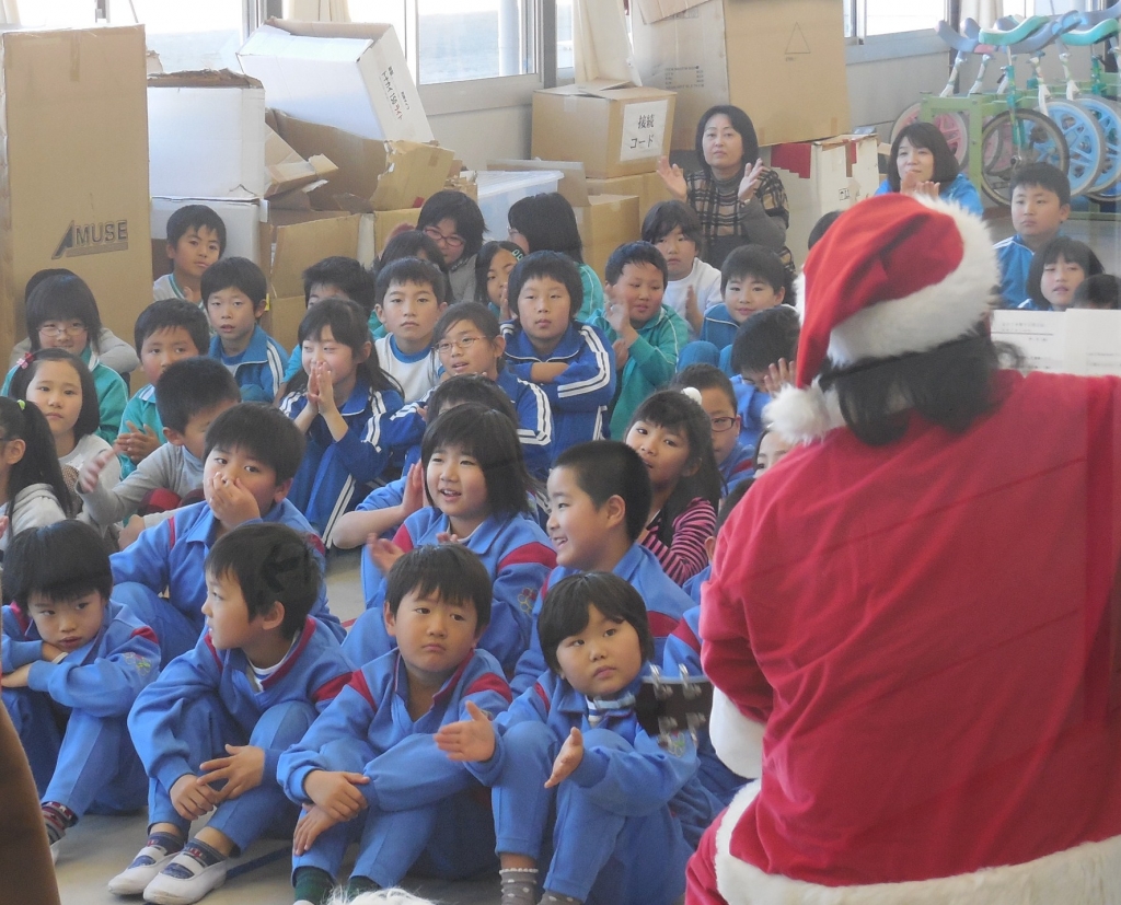 12月3日(水)、図書ボランティアのお母さんたち(小高小)による、おはなしのへやが行われました。12月のおはなしのへやは、毎回クリスマスバージョンでみんな楽しみにしています。今年は2つもプレゼントがあり、スペシャル感いっぱいでした。