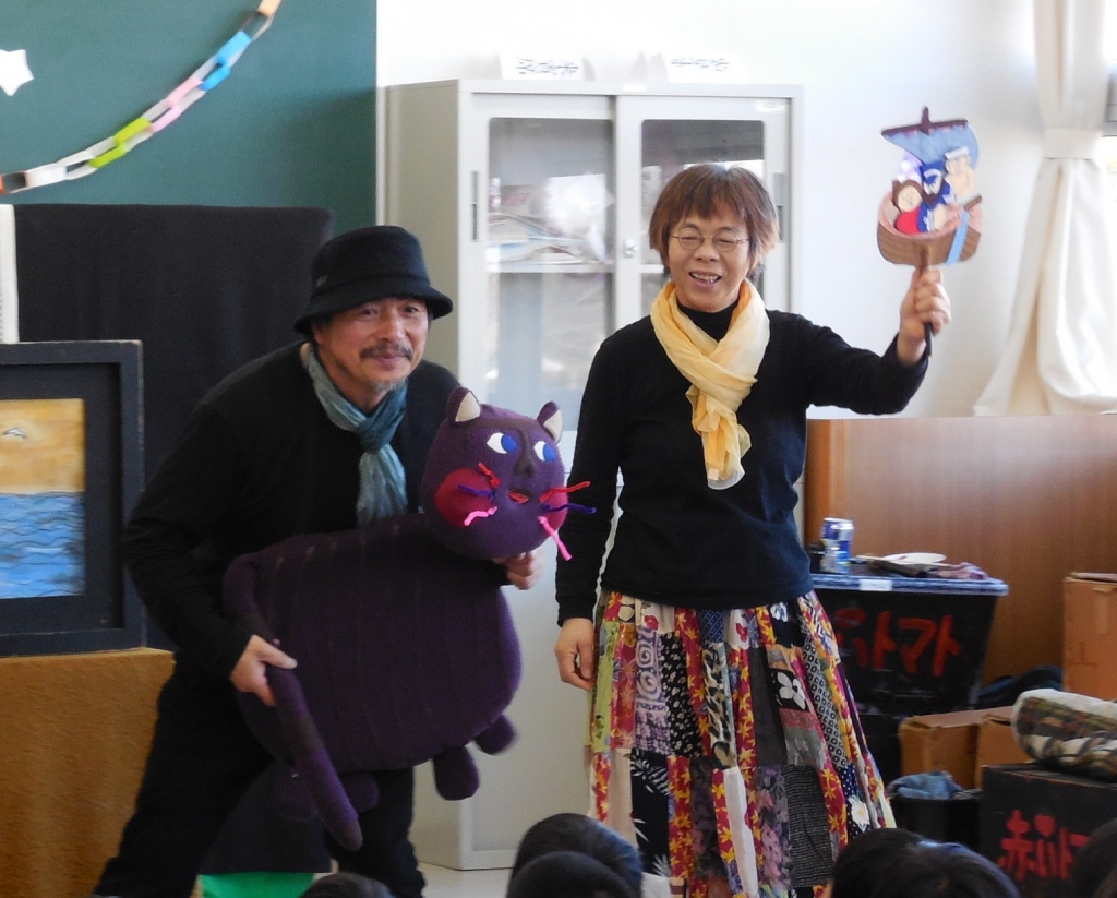 次は、劇団「赤いトマト」のお話です。「赤いトマト」は、ご夫婦2人による手作り人形劇団で、震災前は毎年小高小学校で公演してくださっていました。