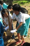 昔ながらの方法で火をおこすことに挑戦しました。道具を組み立てるのも一苦労。今は簡単に着く火を、自分でおこすことの難しさ、火の大切さを実感することができました。