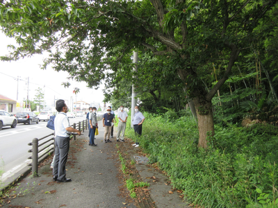 2022年7月28日 16時11分児童が安全に通学できるよう、国土交通省磐城国道事務所原町維持出張所、南相馬警察署、相双建設事務所、市役所土木課、市役所生活環境課、市教育委員会学校教育課の皆さんと通学路合同点検を実施しました。