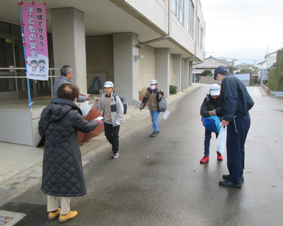 2023年11月27日 08時12分原町青少年育成会・防犯協会の皆様が登校時にあいさつ運動を行いました。