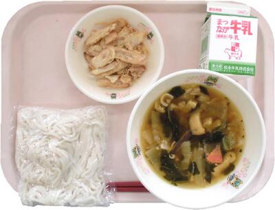 今日の献立:ほうとううどん ごぼうチップ 牛乳