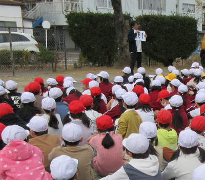 2023年12月11日 07時55分今回の避難訓練は、南校舎の家庭科室が火災になった設定で行いましたので、西側に避難する練習をしました。