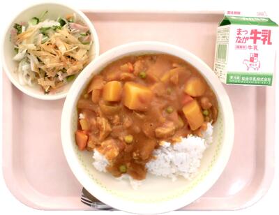 今日の献立:チキンカレー パリパリサラダ 牛乳