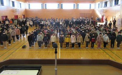 2023年12月22日 12時20分体育館で第2学期の終業式を行いました。