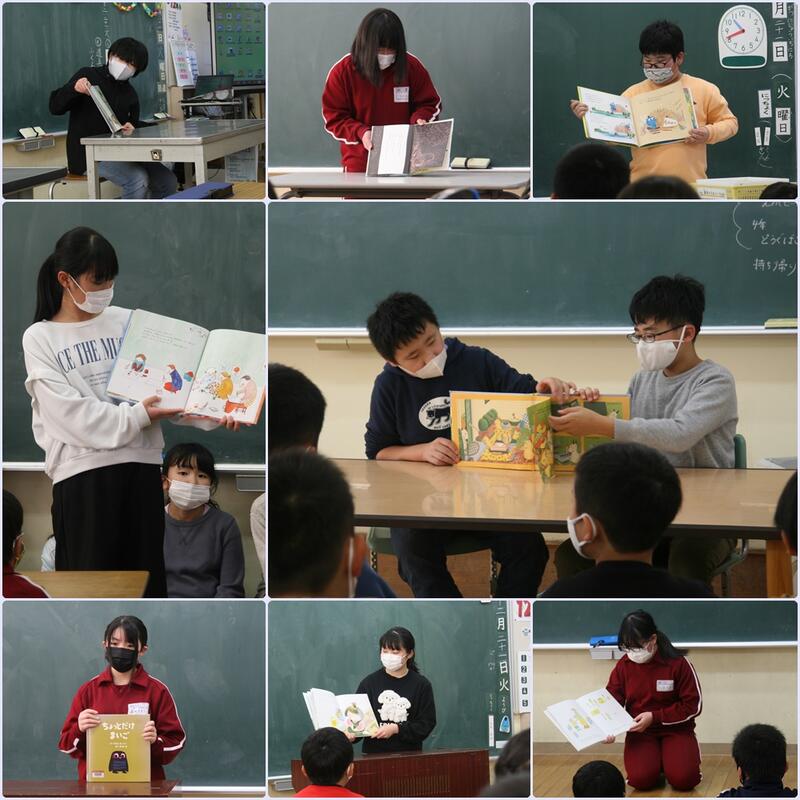 2021年12月21日 13時45分 図書委員会の皆さんが1~3年生とけやき学級の皆さんに読み聞かせをしてくれました。