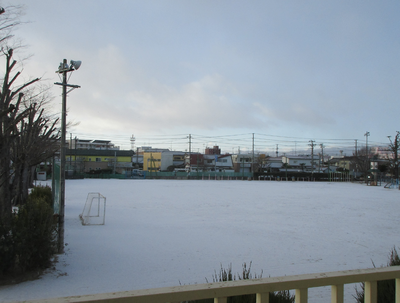 朝、校庭にはうっすらと雪が積もっていて、一面真っ白でした。