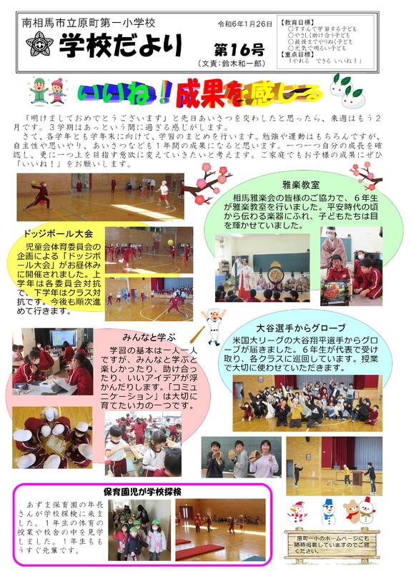 2024年1月26日 13時23分学校だより 第16号をアップしました。