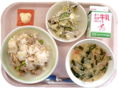 2024年2月20日 12時35分今日は「ふくしま健康応援メニュー」の給食です。健康応援メニューは、『にらとひき肉のたまごスープ』です。そこで今日は、スタミナ野菜の『にら』についてお話しします。ビタミン類が豊富なにらは、かぜの予防によいとされています。にら特有の香り成分「アリシン」には、疲労回復効果のあるビタミンB1の吸収を高め、糖質をエネルギーに変えて代謝をよくするはたらきがあります。にらは、暑さにも寒さにも強く、生命力の強い野菜です。1つの株から1年で3回も収穫できるそうです。今日は、「にらとひき肉のたまごスープ」を食べて、スタミナをつけて冬を乗り切りましょう。