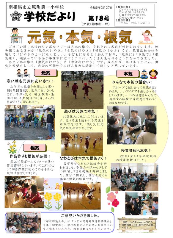 2024年2月27日 12時54分学校だより 第18号をアップしました。