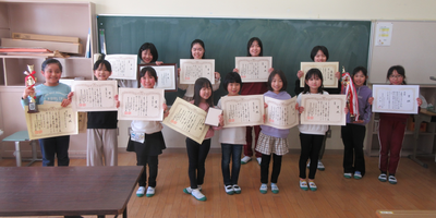 大会やコンクール等で優秀な成績だった児童を校内でも表彰し、紹介しました。