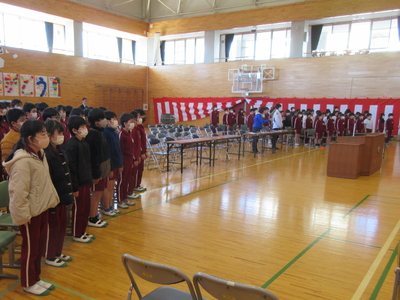 2024年3月18日 16時01分22日(金)の卒業式に向けて、4・5・6年生で練習をしています。