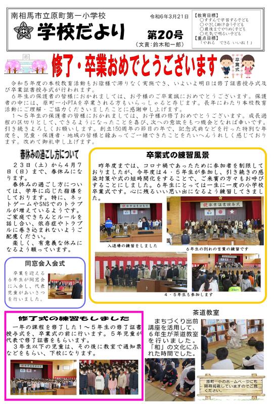 2024年3月21日 12時00分学校だより 第20号をアップしました。