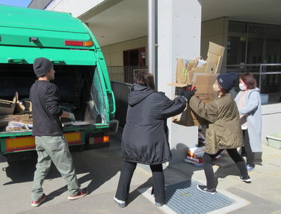2024年3月21日 12時10分3月18日(月)今年度最後の古紙回収を行いました。春の嵐が吹き荒れる中での作業は大変でした(>_<)