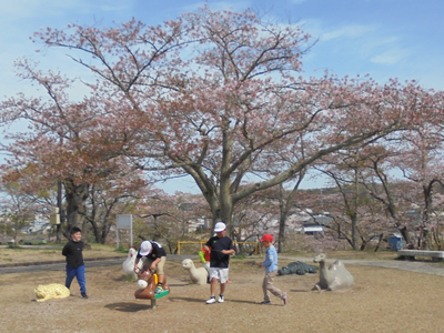 桜が舞い散る中、元気いっぱい歩き通しました。