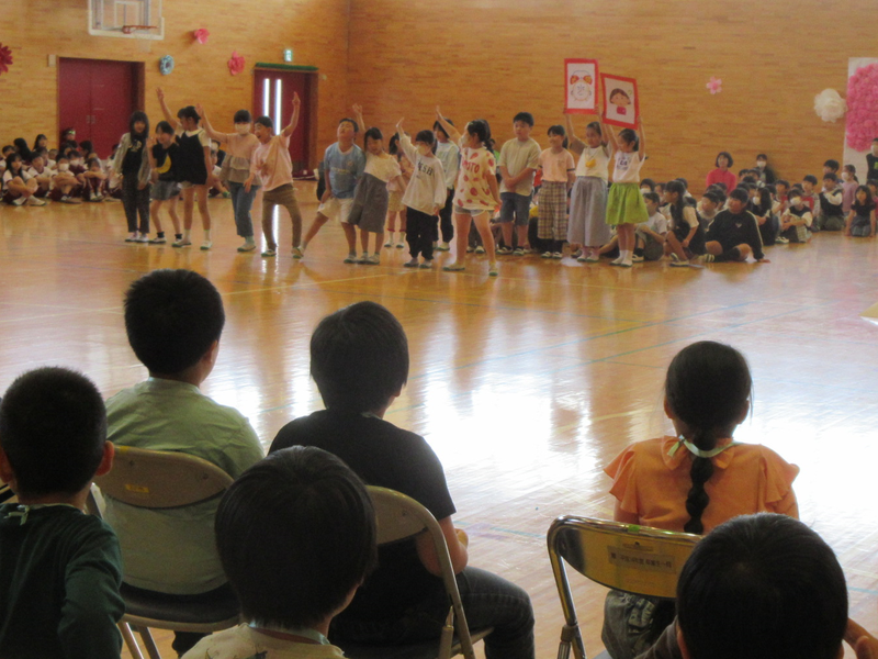 6年生の企画・運営で、全学年参加の「1年生を迎える会」を実施しました。