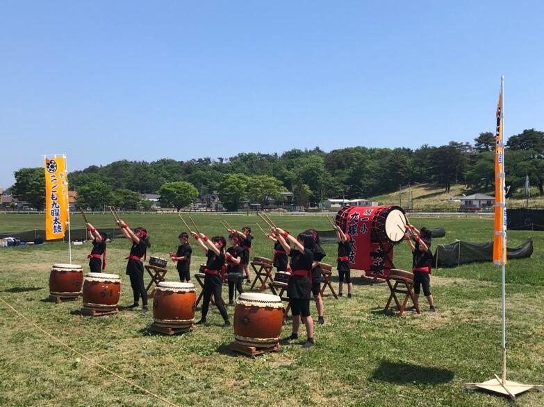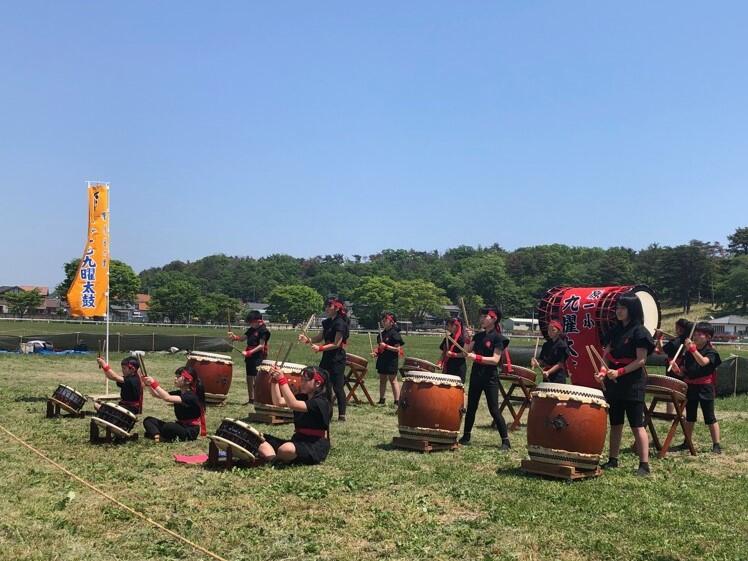 九曜太鼓部が5日のこどもの日に雲雀ヶ原で行われた「相馬サムライフェス」に参加しました。今回は「馬」にちなんだ選曲で演奏しました。