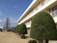 校舎前の植木も、まるでどこかの庭園のようにきれいに刈っていただきました。