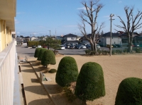 2016年2月23日 15時43分先週はけやきの木や校舎裏の桜の木を枝打ちしてもらいましたが、今週は校庭の庭木を剪定していただきました。