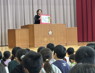集会では、連休前に「安全に気をつけること」や「規則正しい生活をすること」などを、みんなで大事なことを確認しました。
