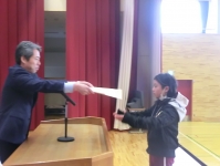 2016年12月12日 17時00分避難訓練の後、全校集会を開き、賞状の伝達をしました。