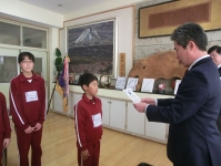 今回はマラソン記録会で自己ベストを出した子どもたちに賞状を渡しました。