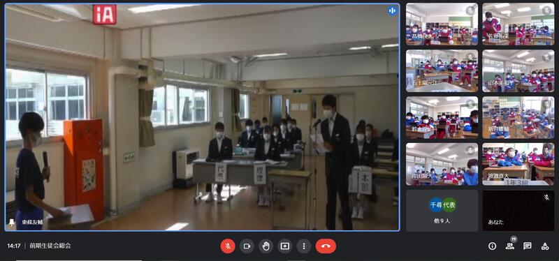 3密回避のために、体育館に全校生徒集合しての総会は見送りましたが、「コロナだからしょうがない」という消極的な姿勢ではなく、「これを機に、新しい生徒会総会のカタチを創ろう!」という熱い思いが伝わるような運営でした。