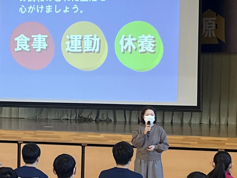 今回は、3年生。「受験期の健康と栄養 ~免疫力を高め、受験本番で力を発揮するために~」というテーマで話してもらいました。
