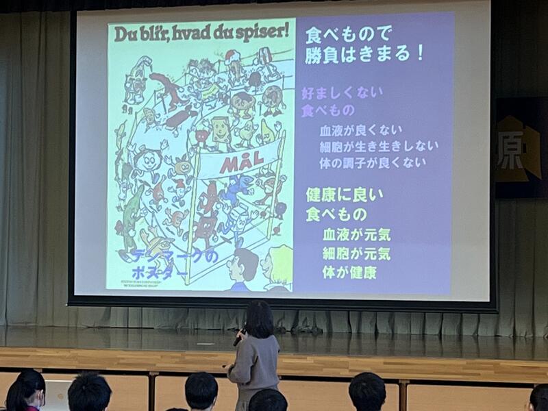2022年12月13日 10時00分本校の栄養士が講師となって、各学年の発達段階等に合わせた内容で行う食育教室。