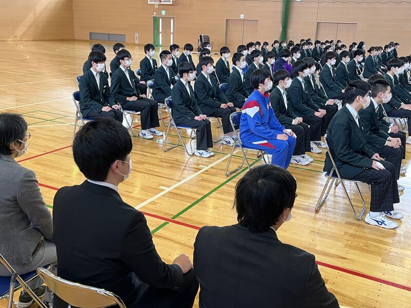 今日は3年生が卒業式の練習の第1回目に臨みました。練習を始める前に、教務主任の先生が「卒業式およびその練習を行う意義」「卒業式の中での起立、礼、返事などの所作に込める思い」などについて、具体的に話してくれました。