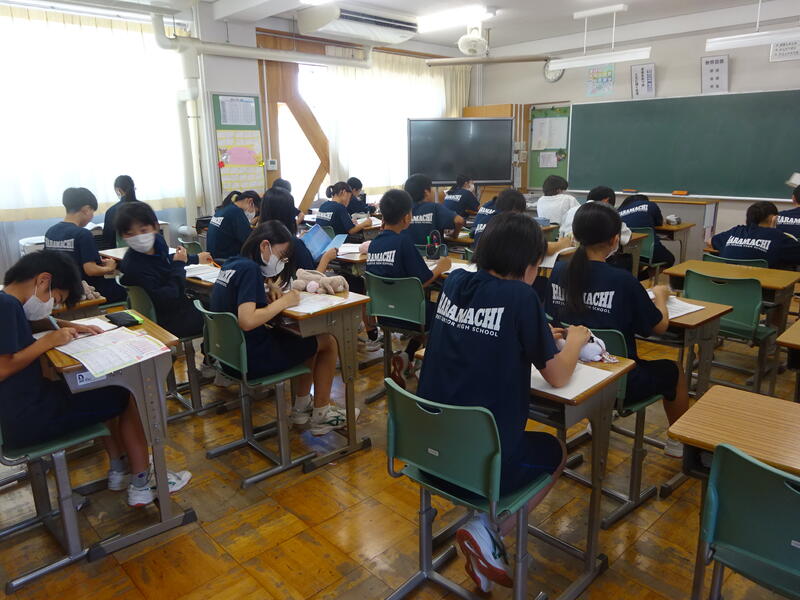 2024年8月26日 13時27分昼休みの様子です。今週の木曜日、金曜日に前期期末テストが行われますが、1年生はテストに向けて静かに勉強していました。短時間でも集中することで大きな成果が生まれます。1年生にとって初めての期末テストですが、頑張ってほしいと思います。