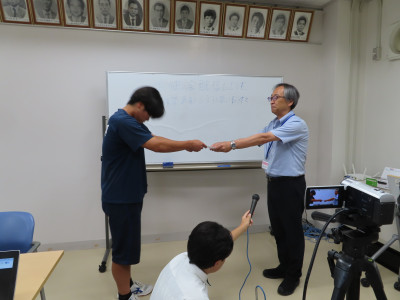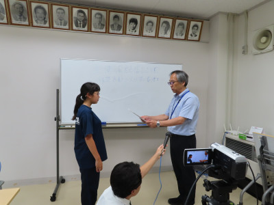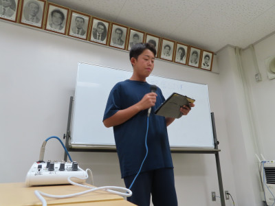2025年7月1日 16時58分本日の生徒会放送は、先日の体育祭の表彰を行うためオンラインで各教室とつなぎ動画配信しました。学校でも、コロナ禍の時期にこうした配信が一気に普及し定着しています。先生、生徒ともにICTの使用率が高いのも一中のいいところだと思います。本日は、いつも耳(放送)で聞いている生徒会放送名物?「ジャーン・ケーン・ターイム」を生で見ることができました。今日、私は「グー」。勝ちましたよ!