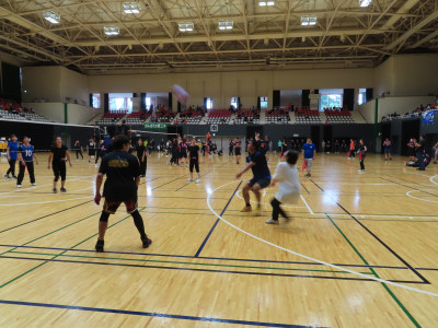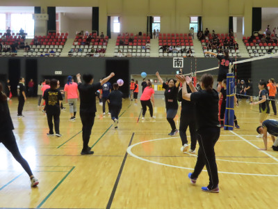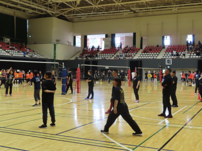 2025年7月6日 12時11分昨日、原町区連合PTA球技大会が行われました。まるさんあったまるアリーナには、27名の保護者の方々と先生方が集結し、2チームに分かれてソフトバレーボール競技を行いました。珍プレー好プレーの連続で、勝敗は忘れてしまいましたが、そんなことはまあいいでしょう。とにかくみんな笑顔で楽しめた球技大会でした。その後夜の懇親会でもみんなで楽しくお話ができて盛り上がりました。私の目標に「一中をファミリーにする!」というのがあります。先生も保護者も地域の方も気兼ねなく一中に集い、家族のように温かくみんなで生徒たちを育てていきたいな。という思いです。試合の前には、全員で大きな円陣を組みました。この輪がどこまでも大きくなるといいなと思います。ご参加いただいた保護者の皆さん、先生方、ありがとうございました!