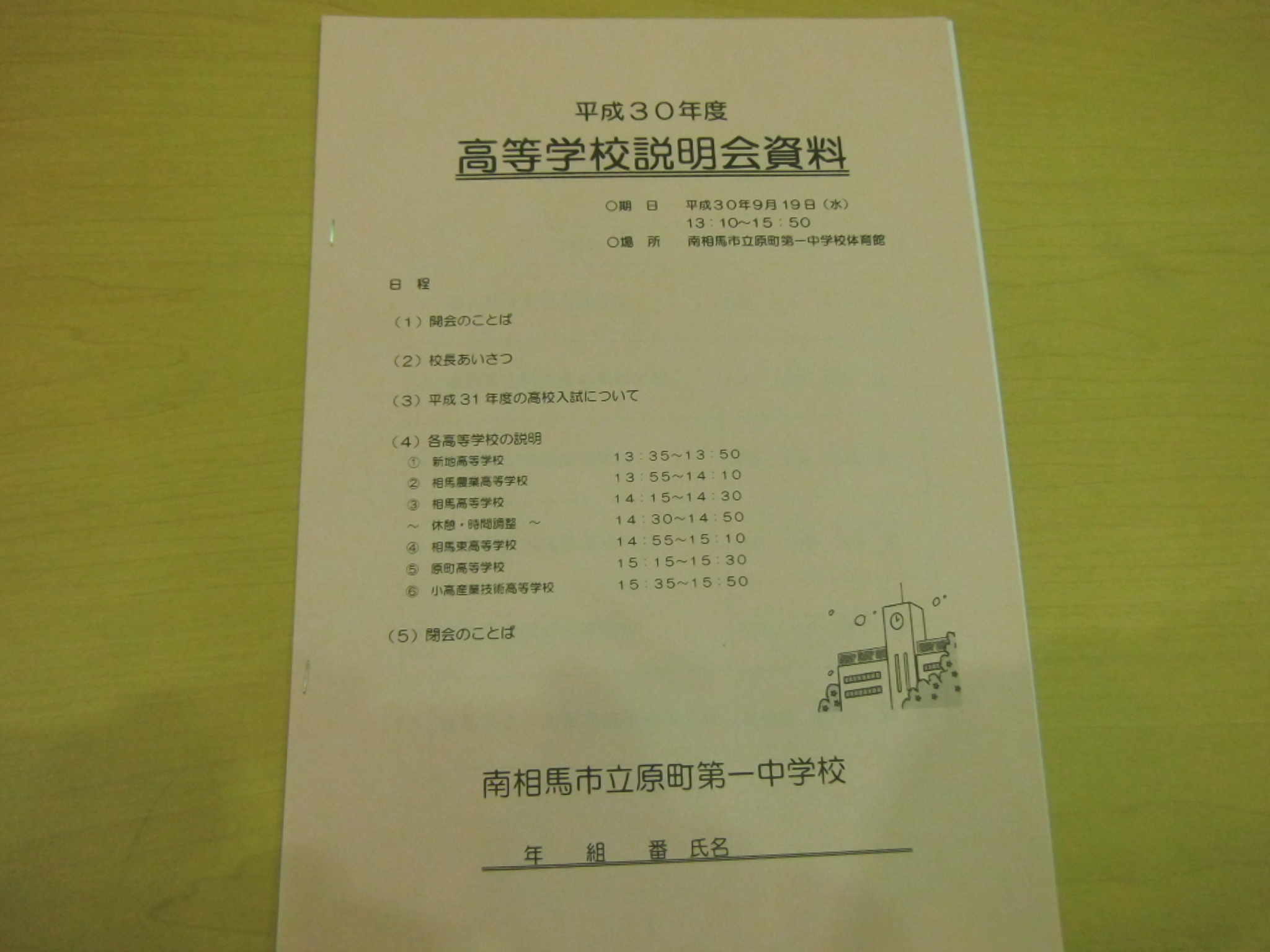 2018年9月19日 15時35分 本日(9/19)午後1時10分から「平成30年度高等学校説明会」を開催しました。校長先生からのあいさつの後、各高校の校長先生または副校長先生から15分ずつ説明していただきました。