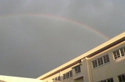 空を見ると、大きい虹が出ていたのでアップします。