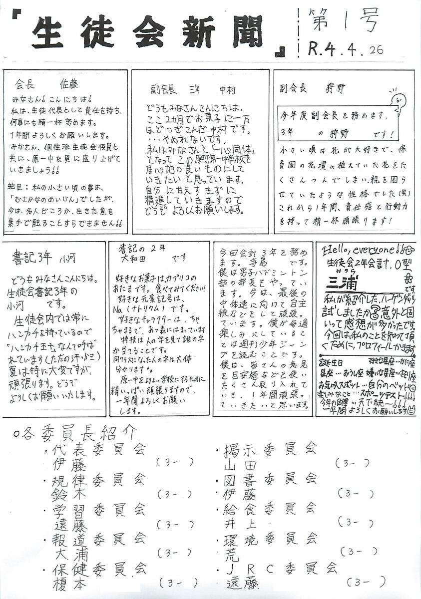 「生徒会タイムズ」第1回目の放送は、この生徒会新聞をもとにした、生徒会役員の自己紹介でした。 新聞には書ききれなかった内容も交えながら、楽しく放送してくれましたよ。 | |