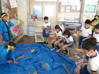 17日、2年生の教室と生活科室でフェスティバルを開催しました。魚つりやボウリング、もぐらたたき、めいろ、おばけやしきなど、段ボールやペットボトルなどを利用し、工夫して作成しました。