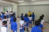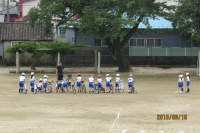しばらく続いた雨で校庭が水たまりになっていること、明日の予報も雨模様であることなどから、中止としました。