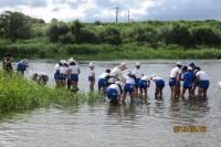 2日目 野外炊飯(カレー) 川遊び(阿賀川) キャンプファイヤー