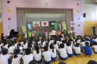 9月5日(土) PTA主催の「ひばりっ子祭り」を開催しました。オープニングステージには、千葉県松戸市で活動されている『東葛合唱団はるかぜ』のみなさんによる、平成23年度の十七字のふれあい作品に曲をつけた、音楽構成「僕らの出番がきっとくる!」の発表がありました。震災後の年の相馬地方の小中生の18の作品が歌となって舞台によみがえりました。当時、本校4年生だった高田君親子の十七字は