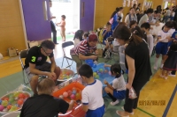祭りでは、各学年ごとに子どもたちが楽しめるストラックアウトや的あて、水ヨーヨー、ビンゴなどが繰り広げられました。子どもたちだけでなく、保護者、地域の方々も集い、にぎやかなお祭りとなりました。